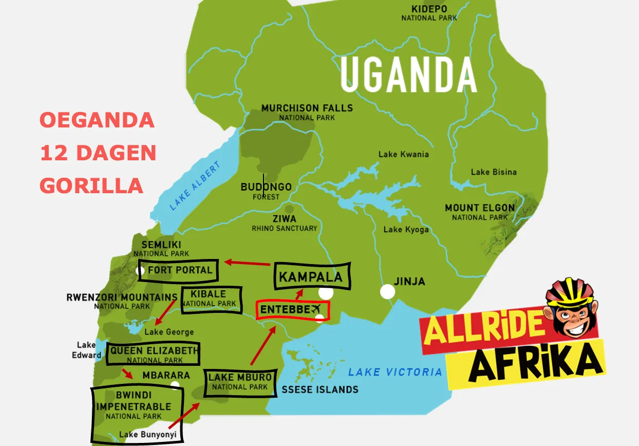 Ongerept en hoogst uniek. We combineren een 12-daagse fietsreis door Oeganda met een bezoek aan de berggorilla’s. Van mountainbiken aan het Victoriameer tot singletrails langsheen kratermeren in het westen. We fietsen via onze zorgvuldig uitgekozen paden tot aan de chimpanzees in het Kibale regenwoud en speciaal voor deze reis rond de 1000-eilanden van Bunyonyi. Tussendoor staan we (optioneel) oog-in-oog met de berggorilla’s. Eindigen doen we met een andere once-in-a-lifetime - de mountainbike safari in Lake Mburo National Park.